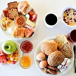 Property was nicely appointed, with cooperative staff and cosy location right next to beach. Breakfast included pastries, eggs and toast, overall it was lovely!